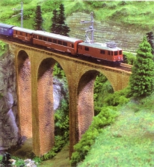 Aktueller Stand Die Modulanlage „Albula-Strecke“ ist inzwischen teilfertig. Sie sehen hier den Aufbau des Bahnhofs Filisur und haben einen Blick auf das Viadukt